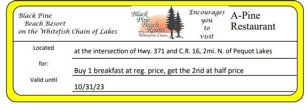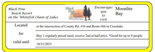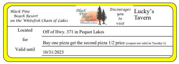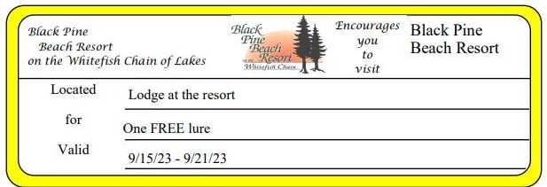 Black Pine Beach Resort One FREE Lure Get Coupon
