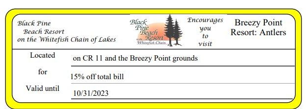 Breezy Point Resort: Antlers 15% Off Total Bill Get Coupon