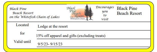 Black Pine Beach Resort 15% off apparel and gifts (excluding treats) Get Coupon