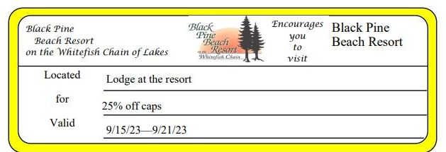 Black Pine Beach Resort 25% Off Caps Get Coupon