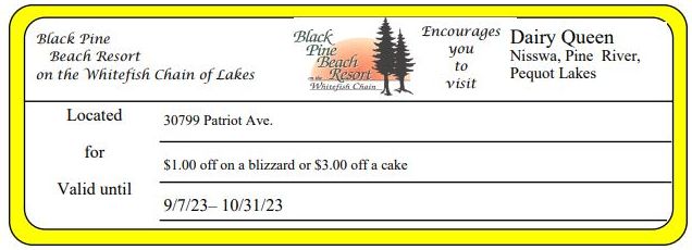 Dairy Queen (Nisswa, Pine River, Pequot) $1.00 off on a blizzard or $3.00 off a cake Get Coupon