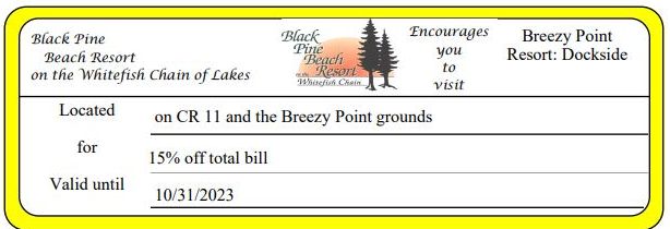 Breezy Point Resort: Dockside 15% Off Total Bill Get Coupon