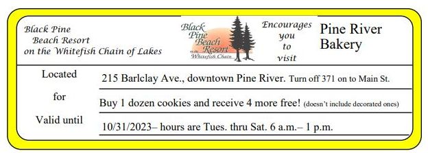 Pine River Bakery Buy 1 dozen cookies and receive 4 more free! (doesn’t include decorated ones) Get Coupon